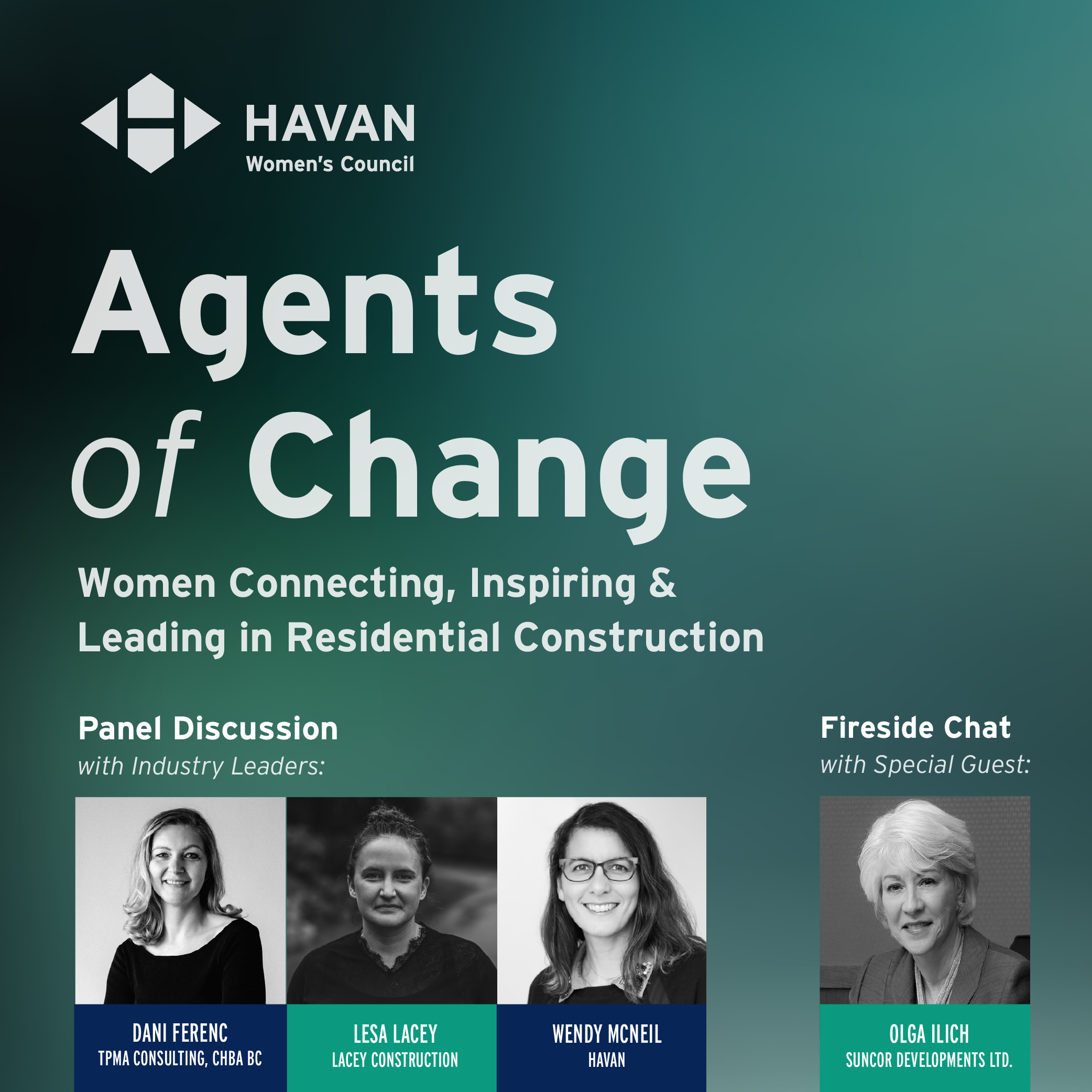 Featuring a powerhouse panel of industry leaders including Lesa Lacey of Lacey Construction; Dani Ferenc of TPMA Consulting Ltd., and Wendy McNeil, Acting CEO of HAVAN, Agents of Change delivers actionable strategies to drive transformation in residential construction. The night will culminate in an exclusive fireside chat with Olga Ilich of Suncor Developments, who will share her journey of breaking barriers and paving the way for future generations.