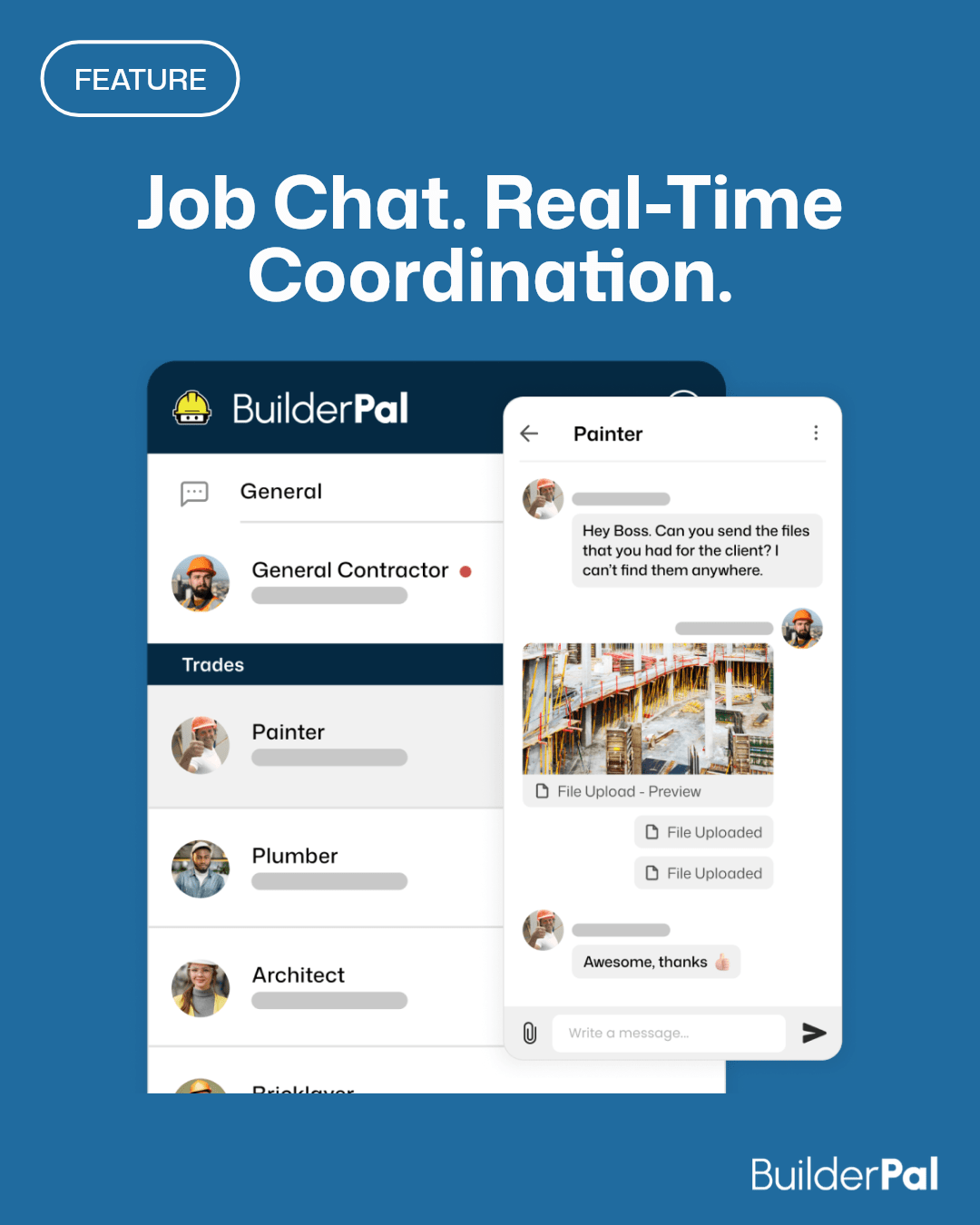 BuilderPal is a powerful project management tool designed for contractors and construction teams. It helps reduce unpaid time and simplify job site coordination with features like real-time job chat, automated notifications, scheduling, time tracking, and budget management. Whether you're managing bids, coordinating trades, or tracking project costs, BuilderPal keeps your team connected and projects on track.
