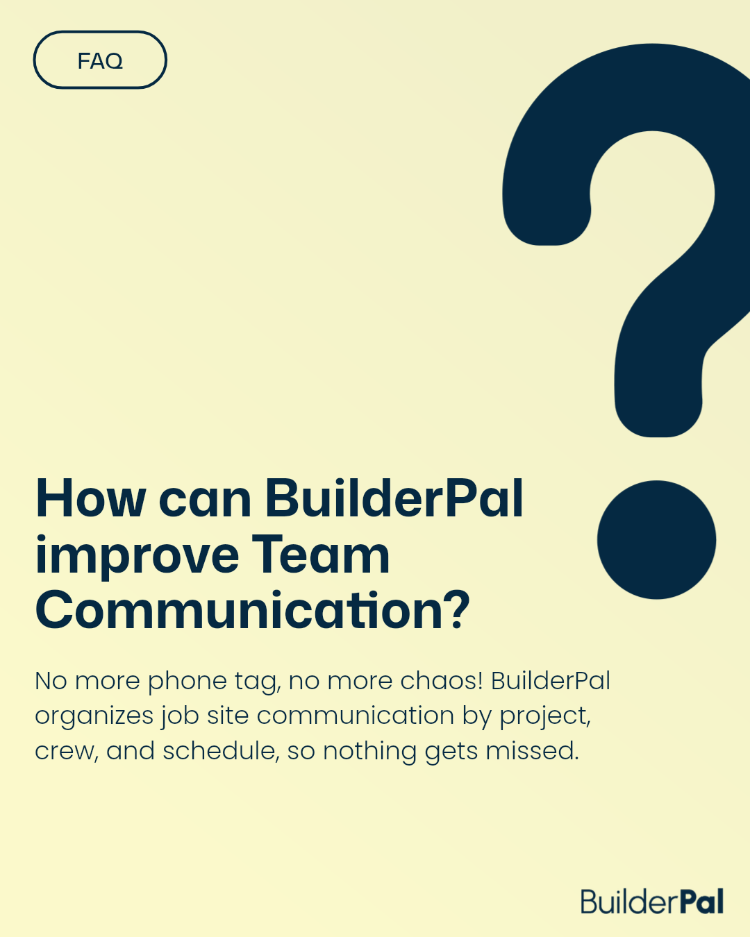 BuilderPal is a communication app tailored for contractors, aimed at improving team collaboration and simplifying jobsite coordination. Our platform is dedicated to tackling the challenge of unpaid hours in the construction industry.